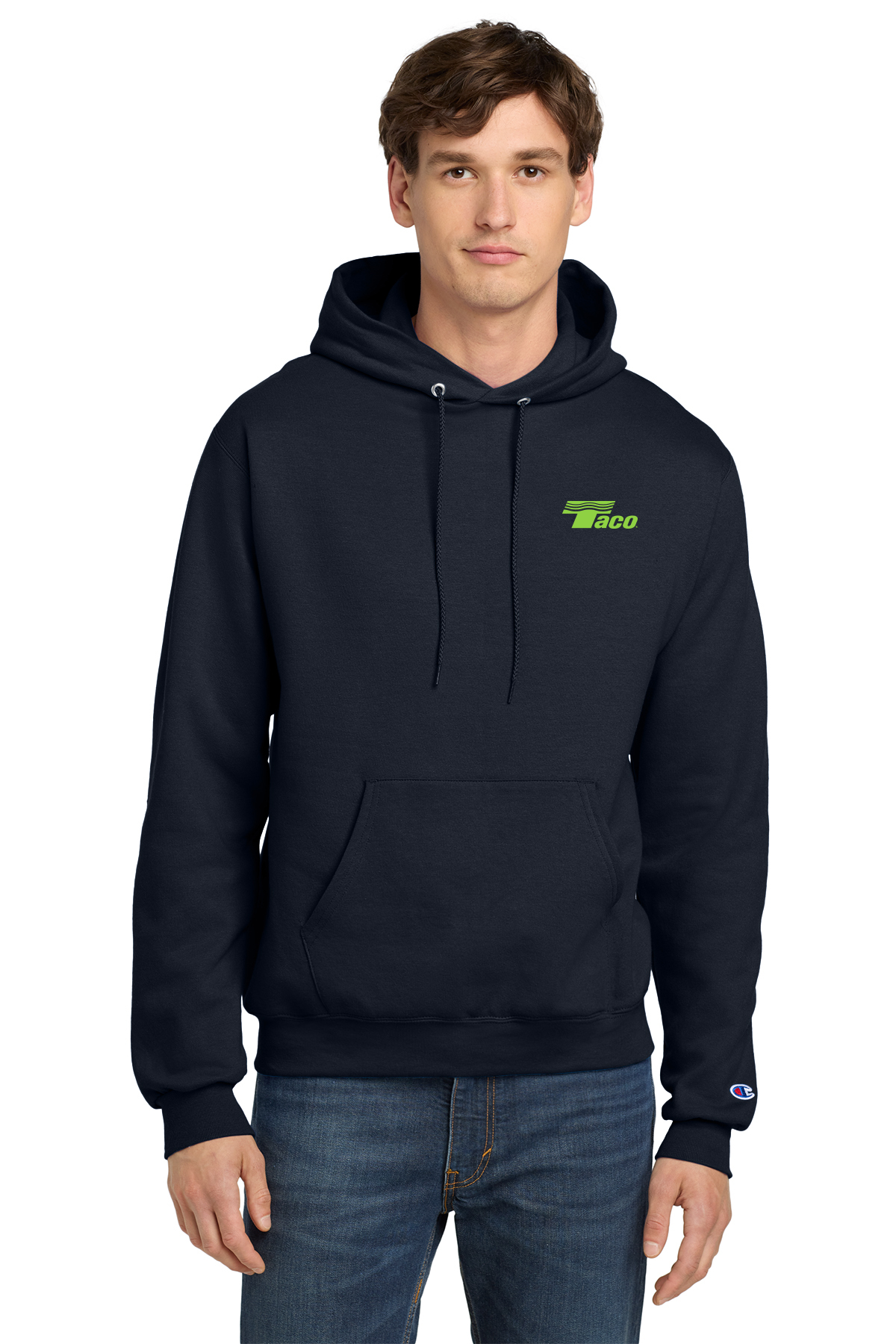 9-ounce, 50/50 cotton/poly 50/40/10 cotton/poly/black poly (Light Steel) 50/48/2 cotton/poly/black poly (Silver Grey) 100% U.S. grown cotton Double Dry technology wicks moisture Two-ply hood with dyed-to-match drawcords 1x1 rib knit sleeve cuffs and hem Front pouch pocket Embroidered Champion “C” logo at left cuff Woven back neck label